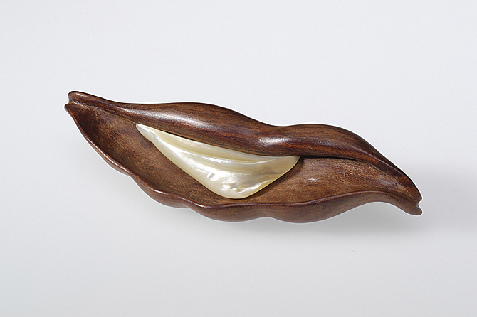 slivoňové dřevo, perleť, nerez ocel, d. 10 cm