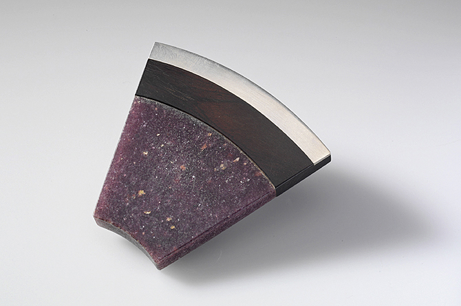 lepidolit, grenadilové dřevo, postříbřený kov, nerez ocel, d. 6 cm